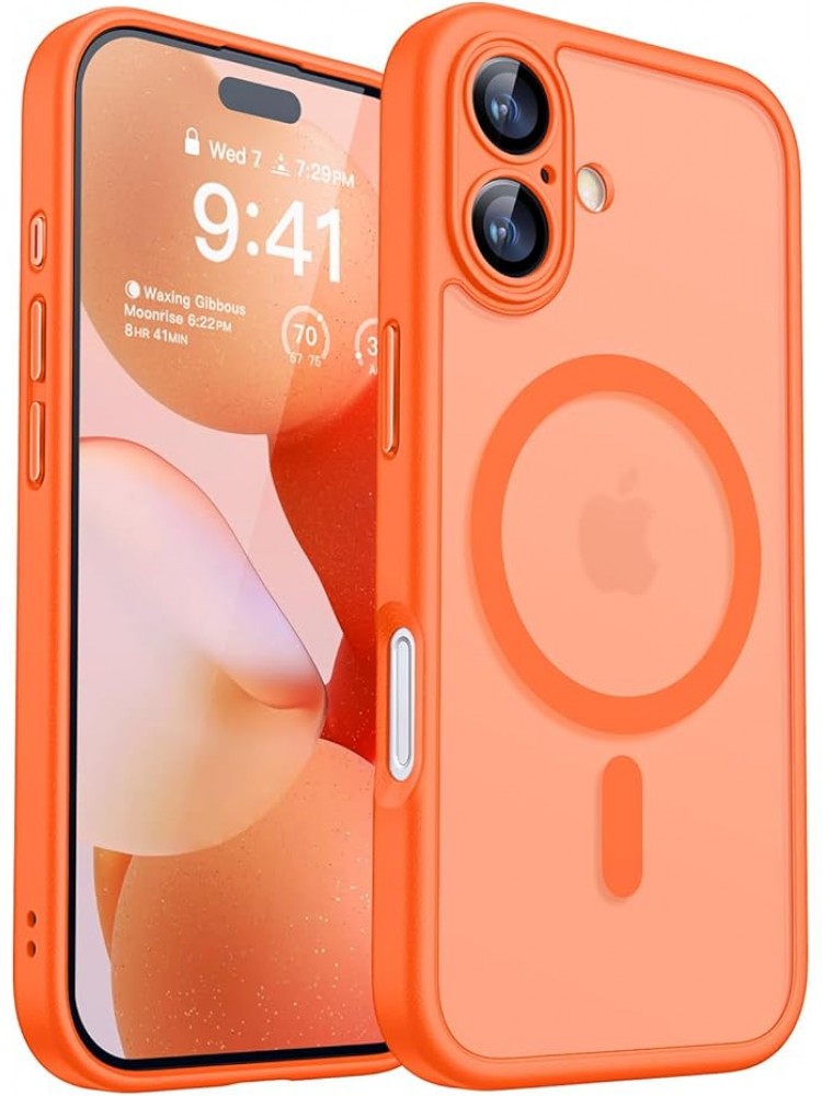 Magnetic Matte Shockproof Phone Case for ip17 – Full Camera Protection-Orange